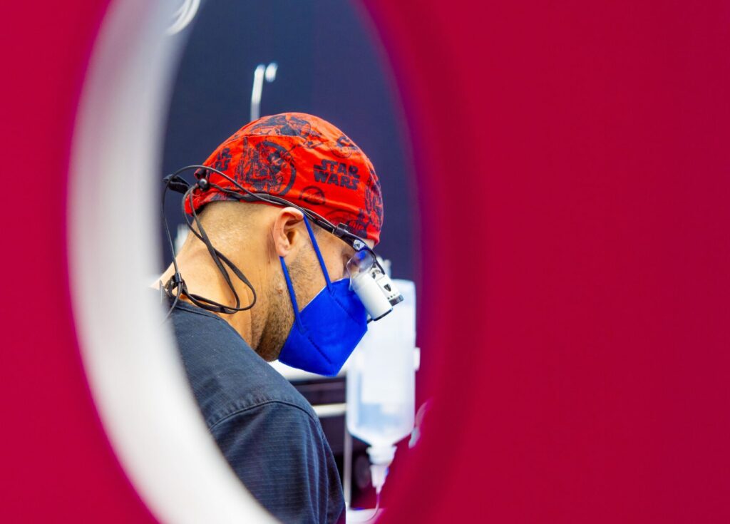 Die Behandlung mit Zahnimplantaten wird in der Regel unter örtlicher Betäubung durchgeführt, sodass der Eingriff selbst schmerzfrei ist. Unsere Patienten berichten in der Regel von einem gut tolerierten Eingriff und einer schnellen Heilung. Durch unseren minimal-invasiven Konzeepte haben wir so gut wie nie Schmerzen oder Schwellung Während der Heilung können in den ersten Tagen leichte Schmerzen oder Schwellungen auftreten, die jedoch mit Schmerzmitteln gut kontrolliert werden können.. Optional bieten wir eine Implantation unter Vollnarkose an.